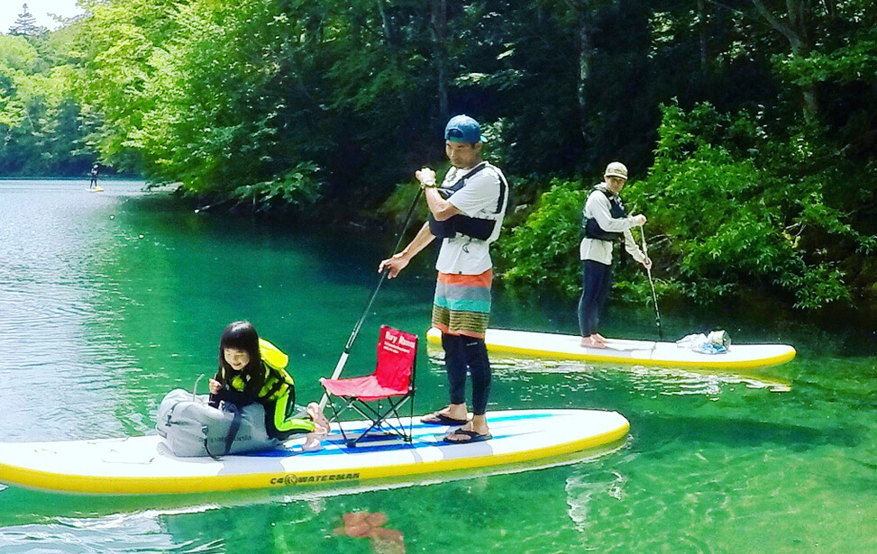 透き通る透明の湖面をSUPに乗って冒険に飛び出そう!